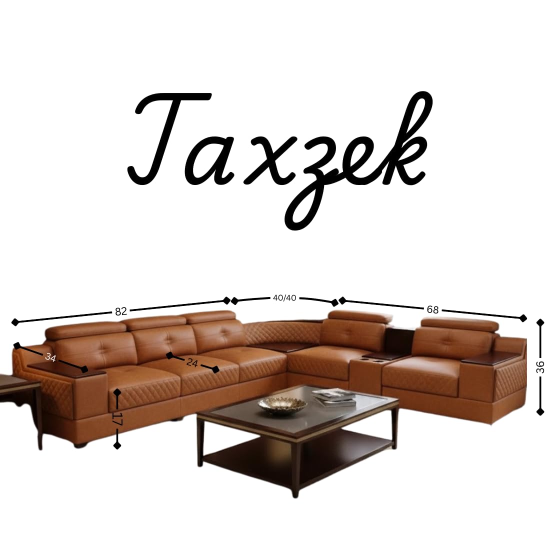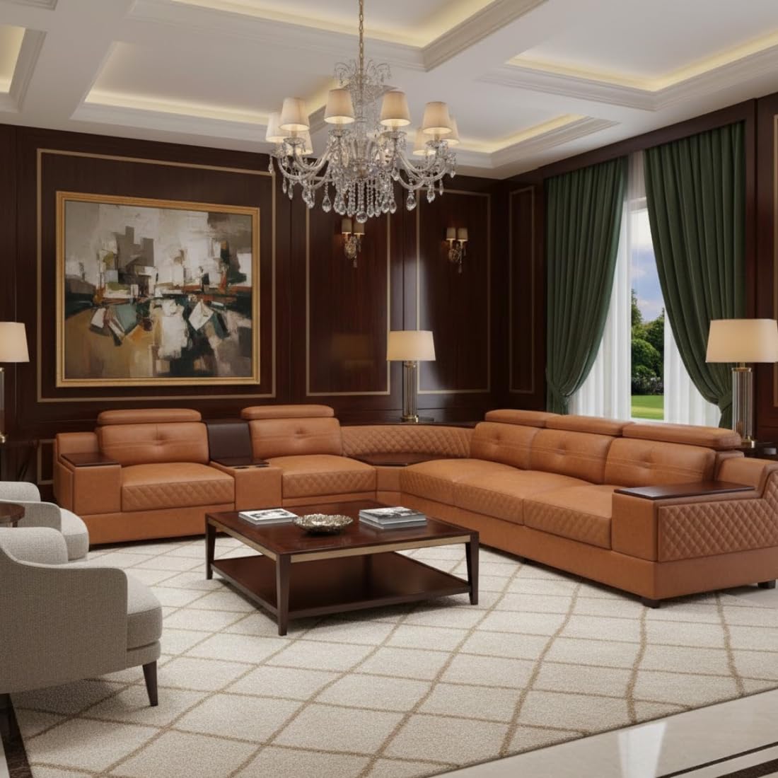 Luxurious Brown Leather Sectional Sofa| Modern Quilted Design with Adjustable Headrest| 6 Seater| 190x81x81 cm