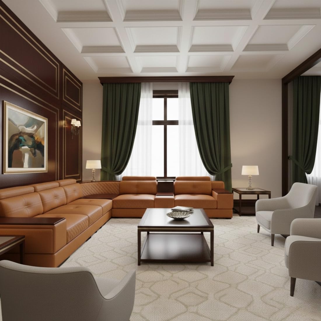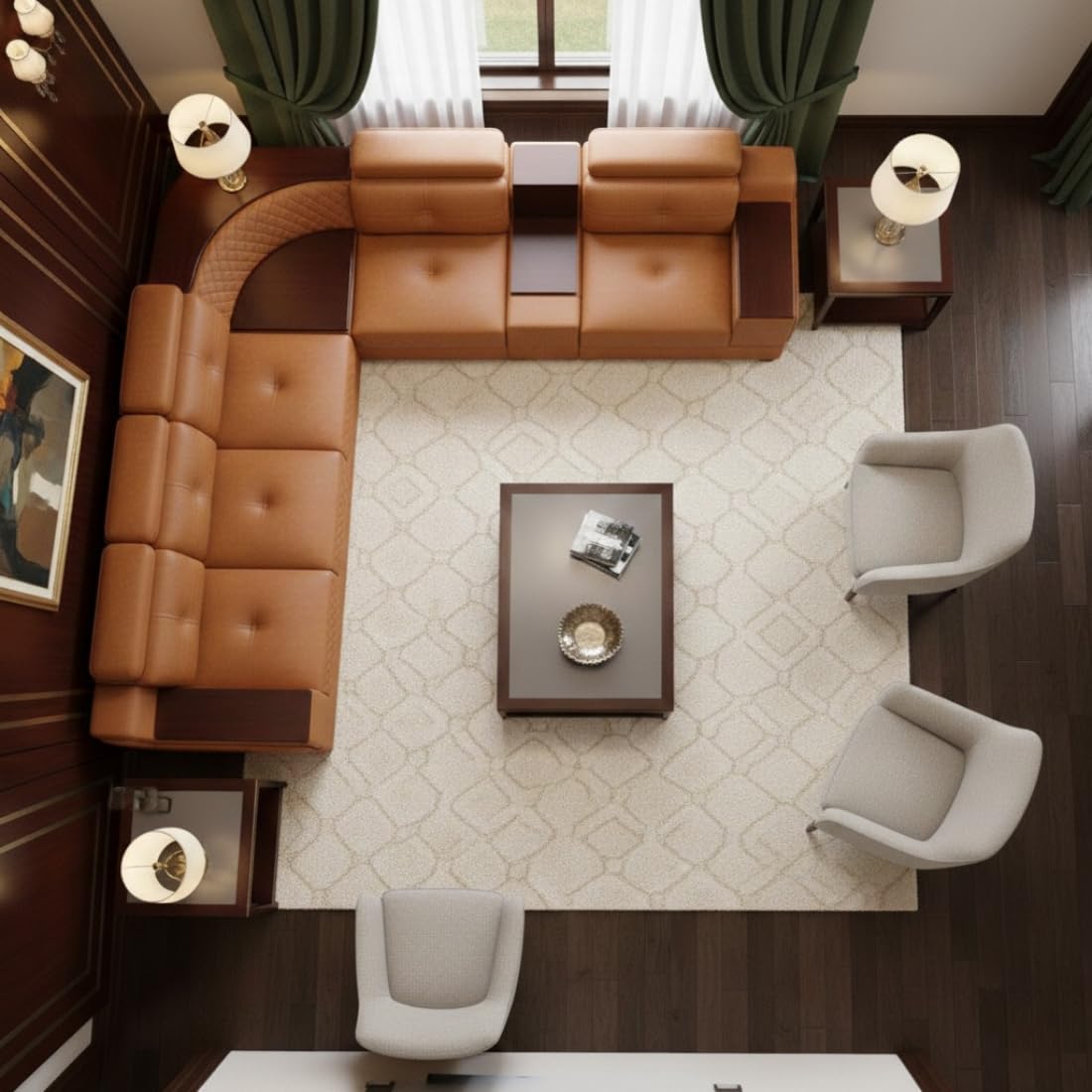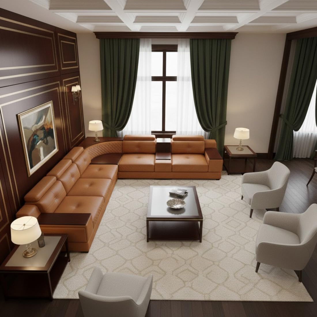 - READY TO USE: Arrives fully assembled weighing 70 kg, requires only 10 cm wall clearance, suitable for living rooms, halls, and offices, with polished finish and built-in wooden console tables