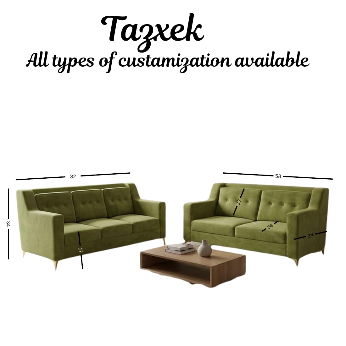 Be the first to review “Modern 5 Seater Sofa Set with Pillow Back | Button Tufting | and Golden Stainless Steel Legs | Olive Green | 2 Piece.”