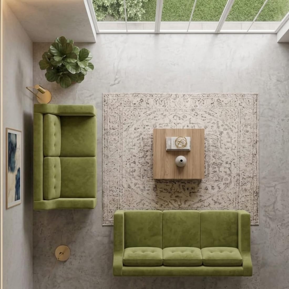 modern 5 seater sofa set with pillow back | button tufting | and golden stainless steel legs | olive green | 2 piece.Modern 5 Seater Sofa Set with Pillow Back | Button Tufting | and Golden Stainless Steel Legs | Olive Green | 2 Piece.