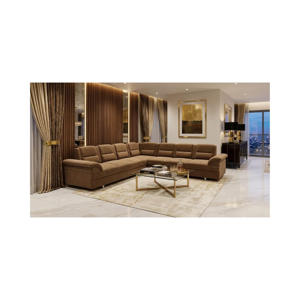 - MODERN L-SHAPED DESIGN: This 7-seater sectional sofa features a contemporary L-shaped configuration, perfect for spacious living rooms and open-plan interiors.
