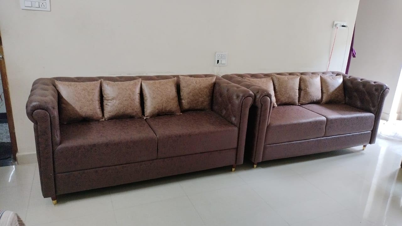 Sofa SetsTaxzek 6 Seater Sofa with Throw Pillows,Rectangular Sofa,Corner New Sofa Set (Brown)