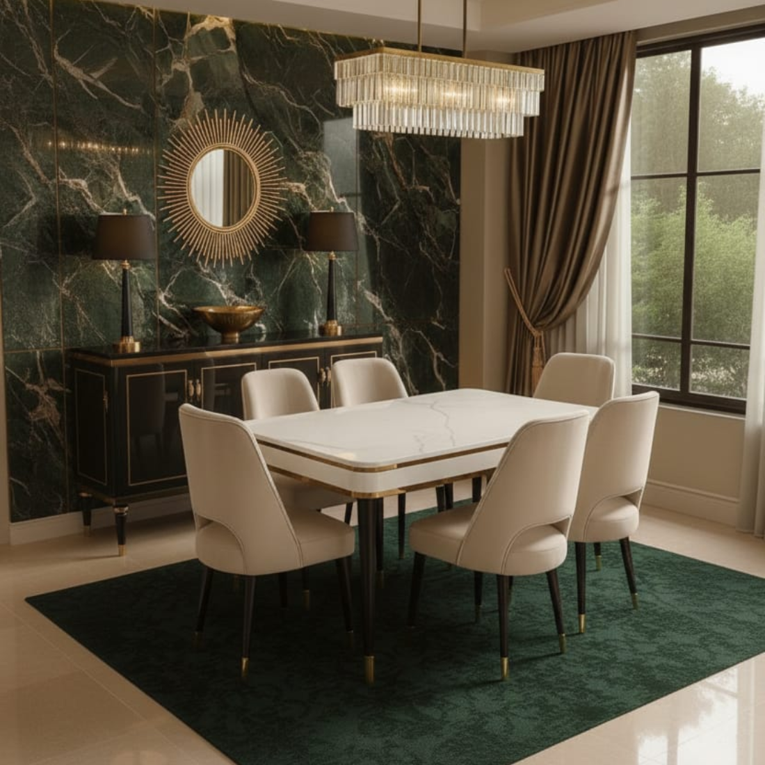 - Premium Marble Top: Features an elegant white marble tabletop with natural veining patterns that adds sophistication and luxury to your dining room whilst being easy to clean