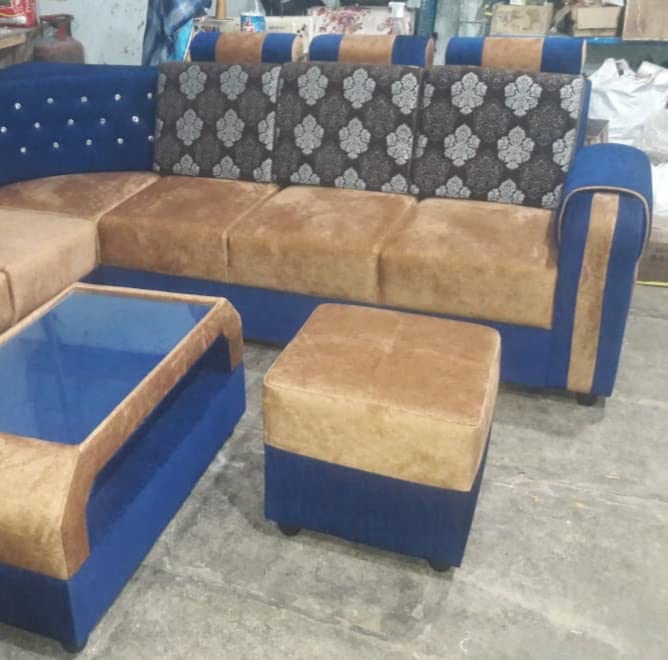 Taxzek Diamand Stitched Living Room 7 Seater Sofa Set (Fabric) (Russet Brown)
