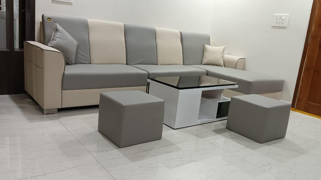 Taxzek L-Shape Sofa Set with Center Table and Two Ottomans (Slate Grey)