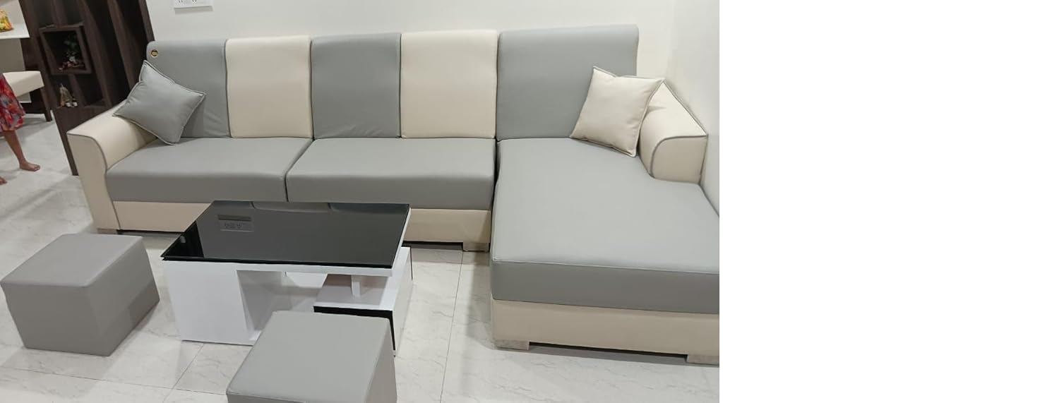 Be the first to review “Taxzek L-Shape Sofa Set with Center Table and Two Ottomans (Slate Grey)”