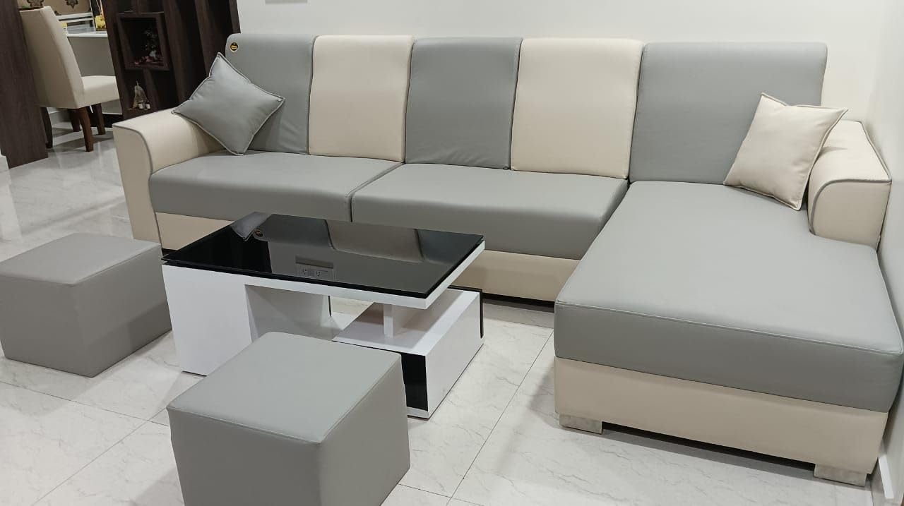 • INCLUDED- L-SHAPE SOFA + CENTER TABLE WITH BLACK GLASS+ 2 OTTOMANS+PILLOWS