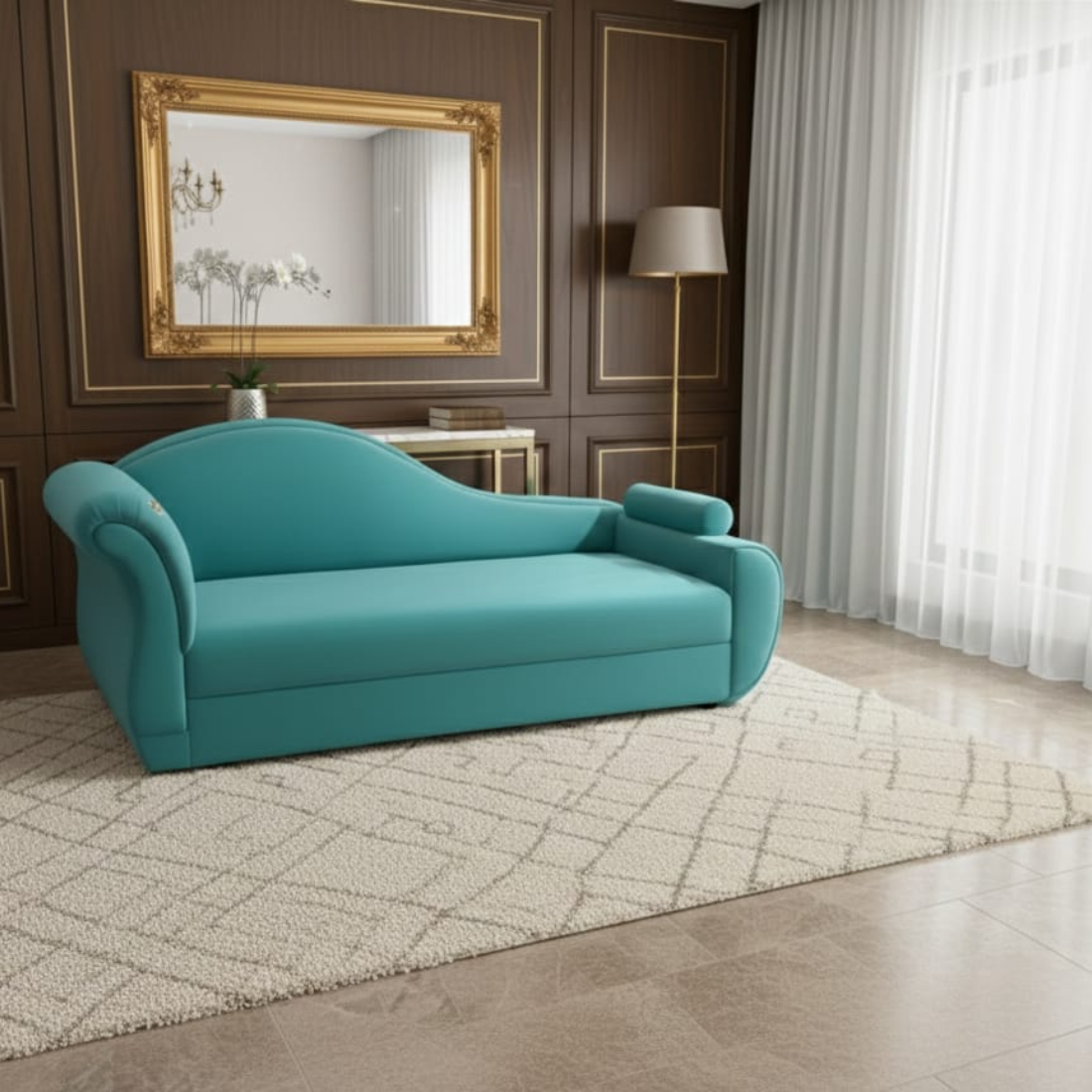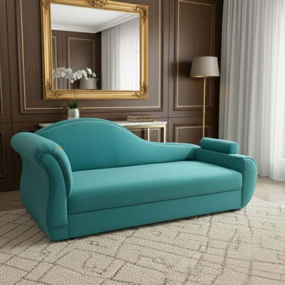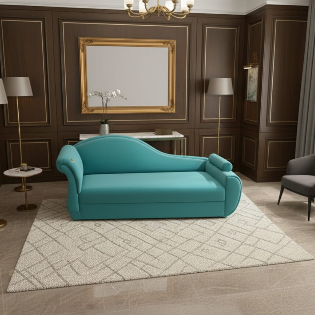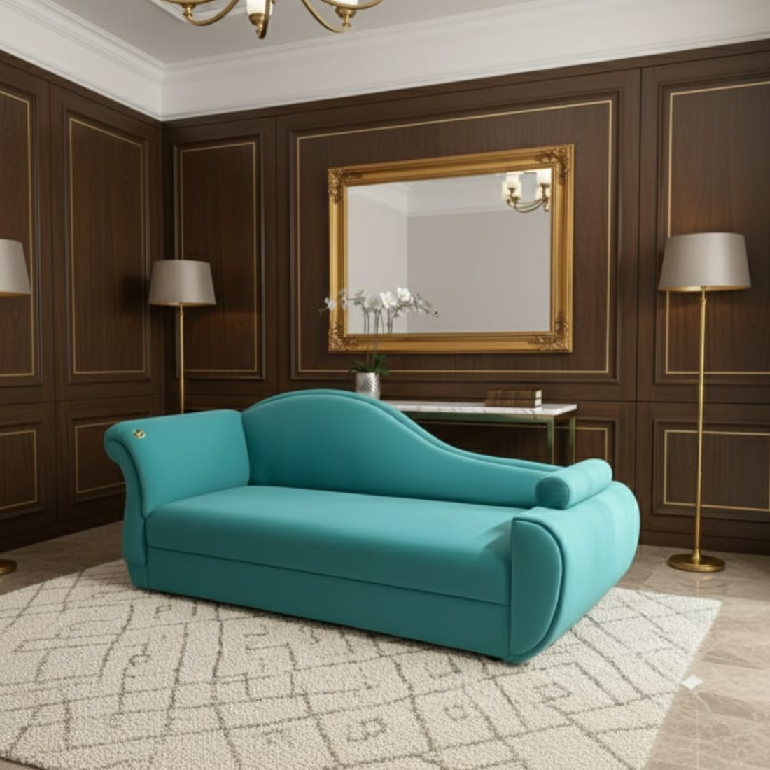 Taxzek Luxury Modern Curved Chaise Lounge, Turquoise Sofa with PVC Black Leg, Premium Design Living Room Furniture.