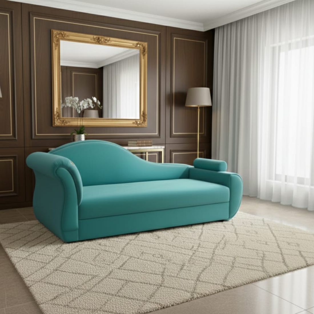 - ELEGANT DESIGN: Luxurious curved chaise lounge featuring a stunning turquoise upholstery that adds a sophisticated touch to any living room decor