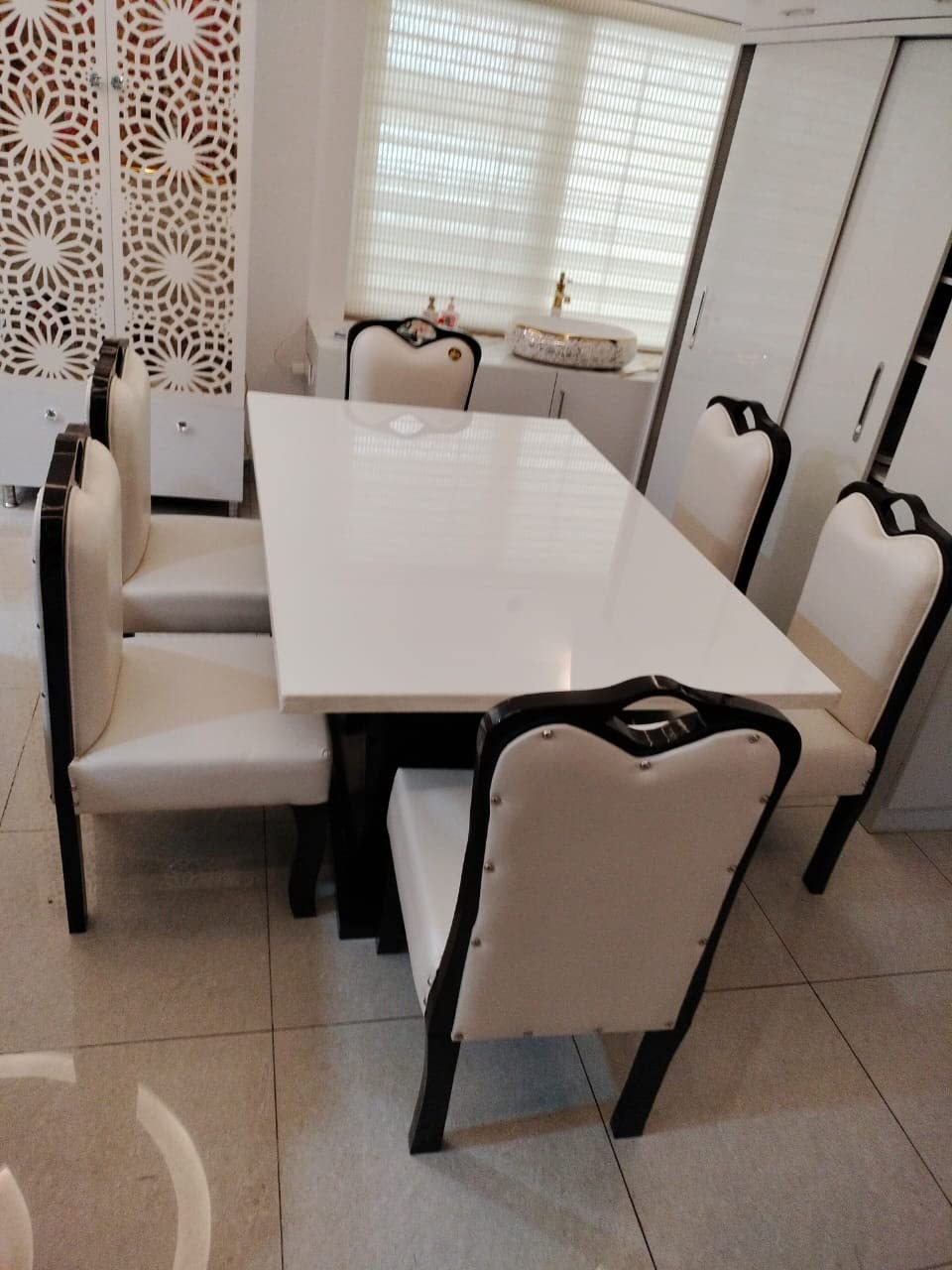 Taxzek Marble 6 Chairs Dinning Table Large (Leather) (2.6Wx5Lx2.5H feet) (carvin)