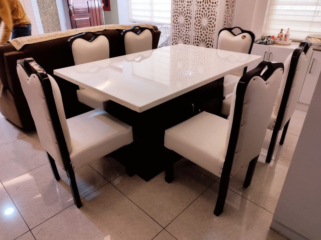 | Special Feature | Designed to accommodate six individuals comfortably, providing ample space for family dinners or entertaining guests., The classic combination of marble and a well-crafted design creates a timeless and elegant dining centerpiece, Waterproof marble with wooden base , 6 chairs with comfortable sitting . See more |