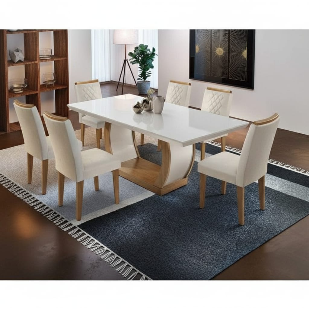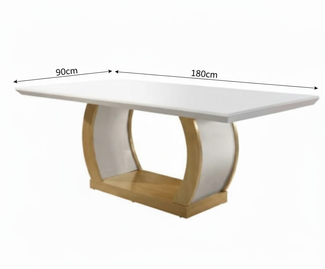This table captures modern elegance by blending organic shapes with luxury materials. The spacious rectangular top features pristine white marble, softened by gently curved edges and protected by a durable polycoating. Below, the unique, apple-shaped wooden base, finished with a warm polish, provides a stunning sculptural contrast and a true centerpiece for any contemporary dining space