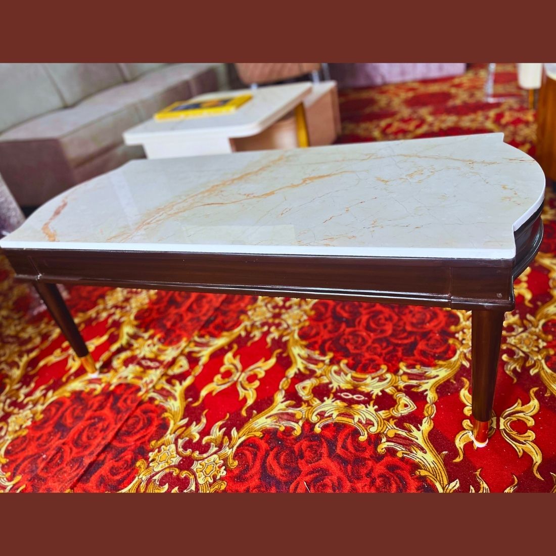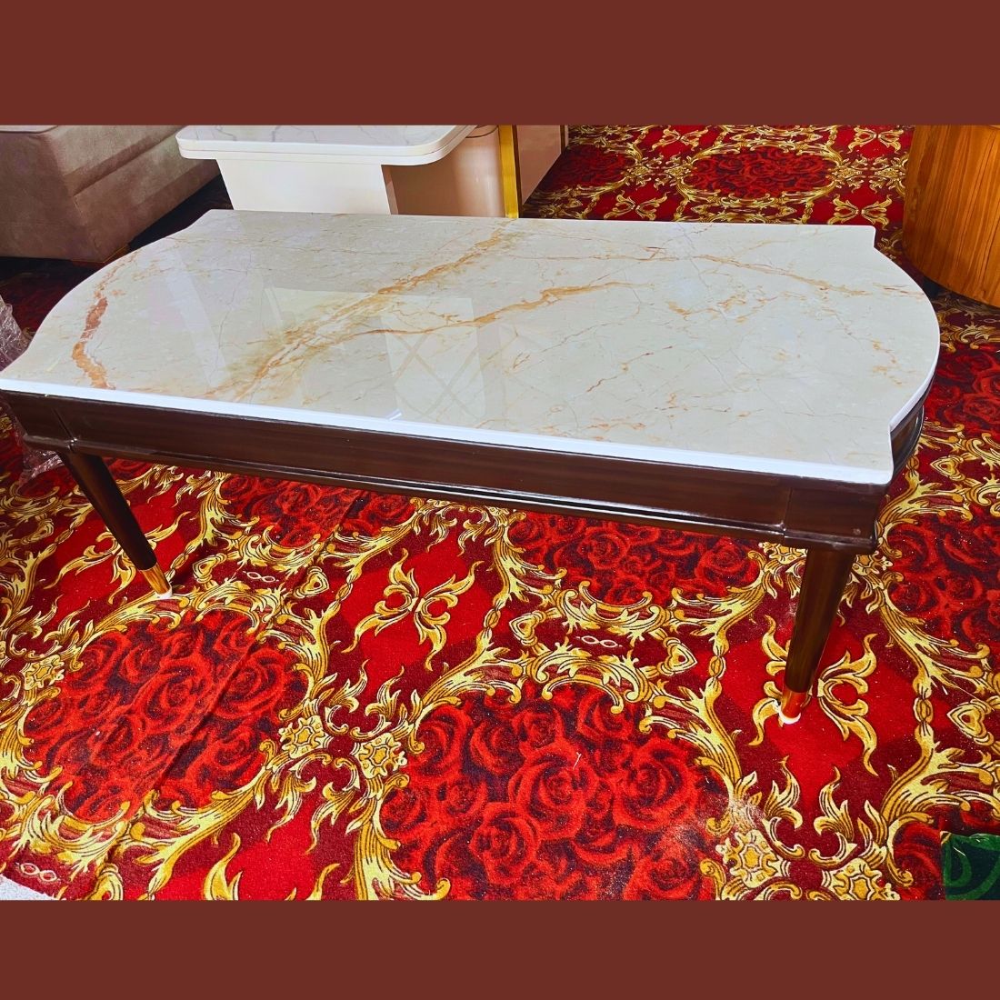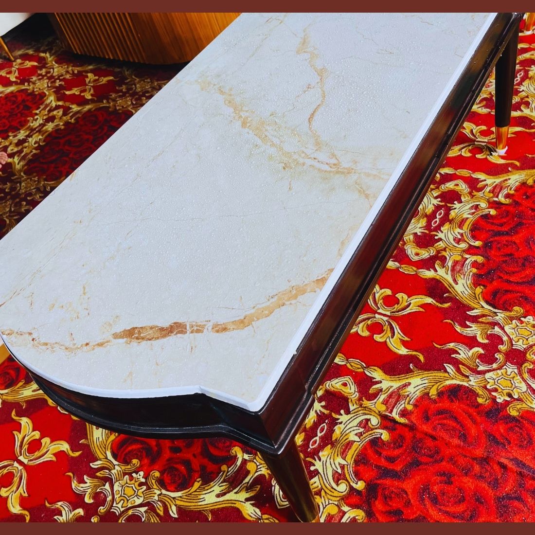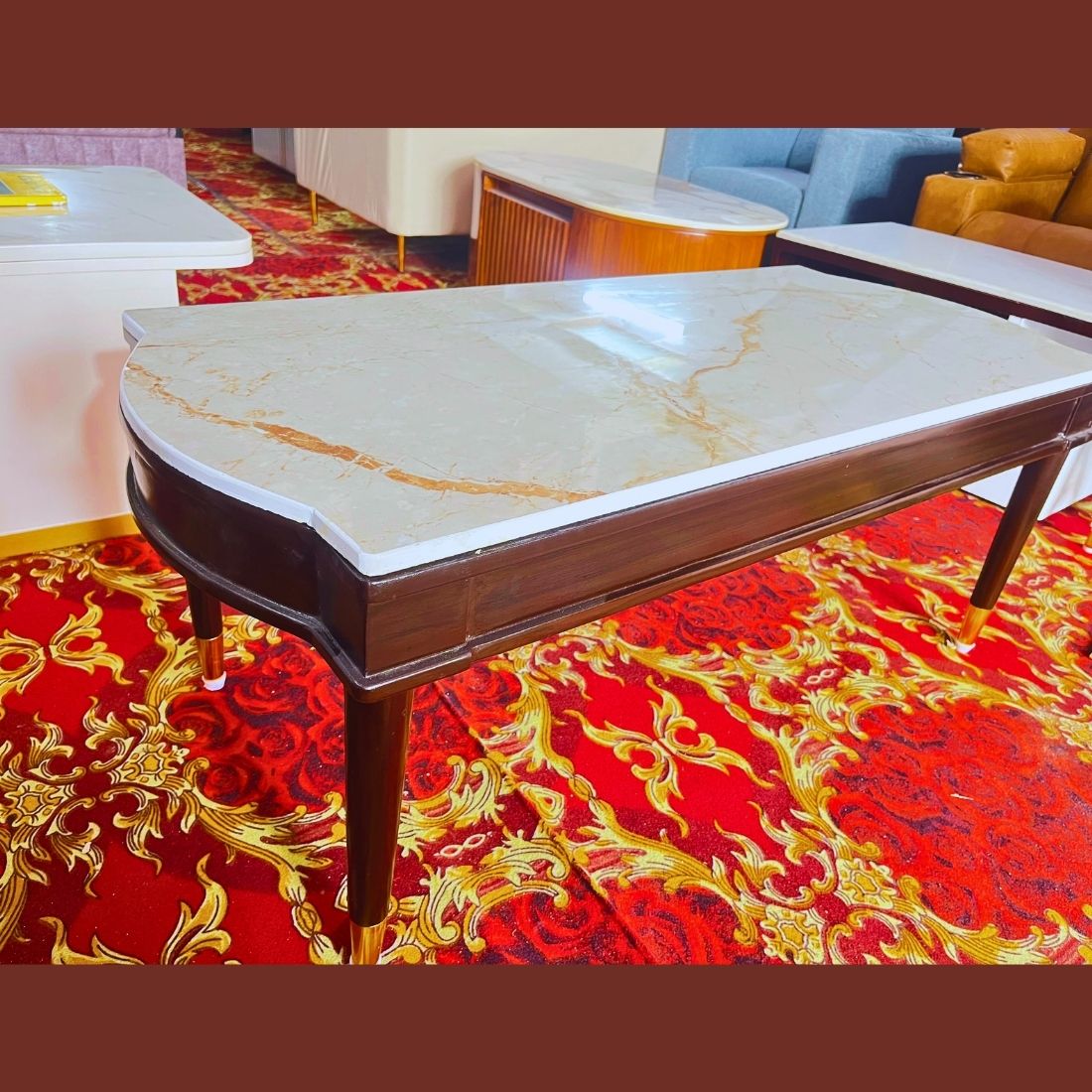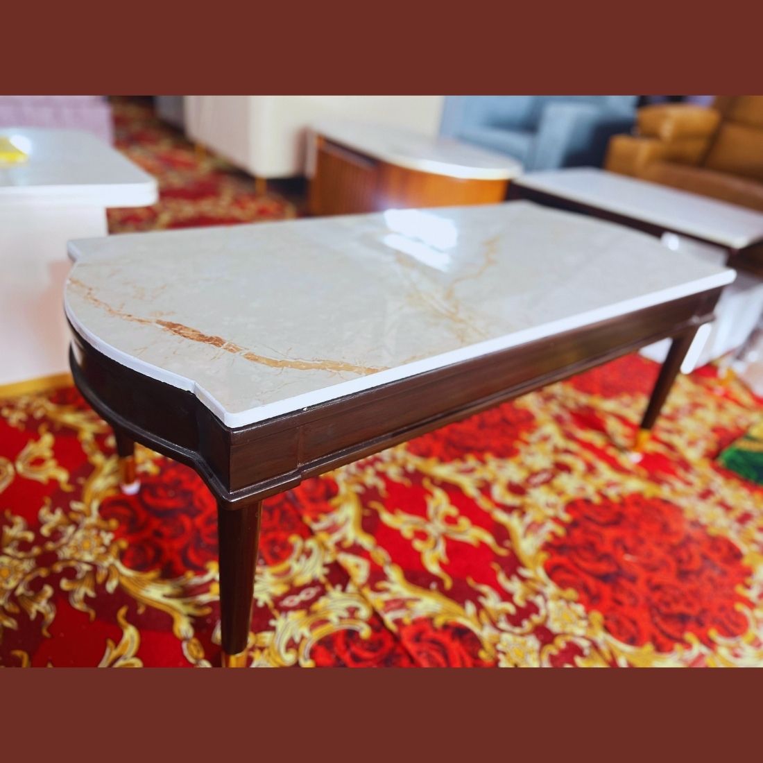 Taxzek Modern Marble Top Centre Table with Wooden Legs, Golden-Brown Polish.