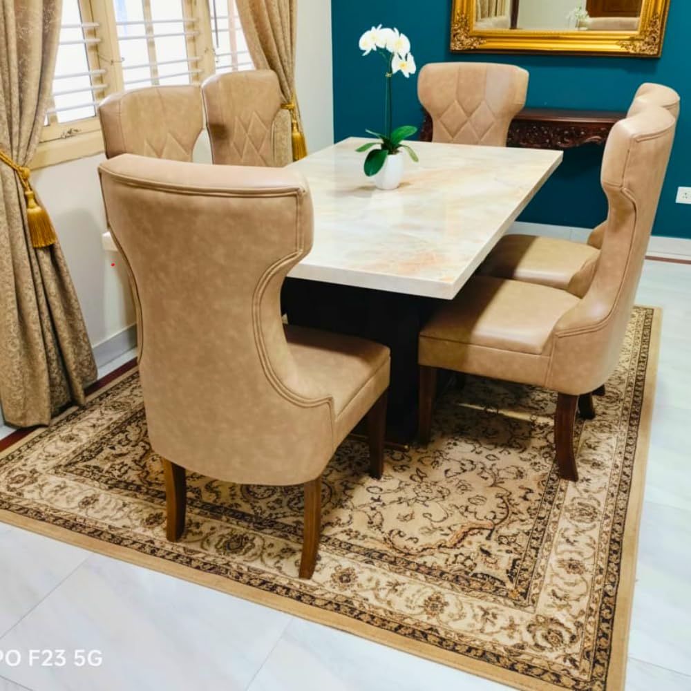 - CUSTOMISATION :- Customisation available , once customer place the order just drop mail for customisation. for online orders We ( Rehmans furniture ) accept only one customisation request . like colour change , size , include extra chair ( payable ) , marble colour etc
