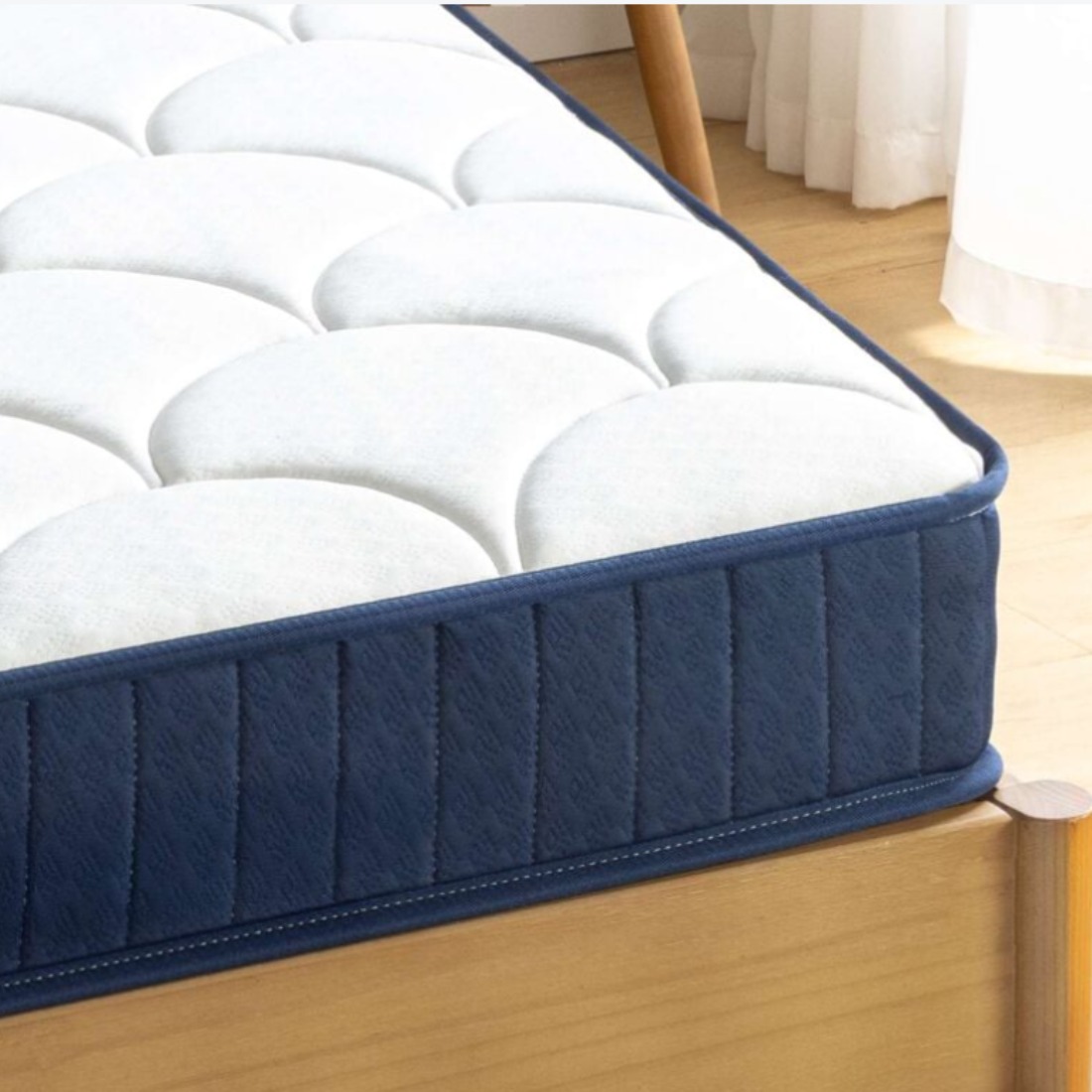 - CONSTRUCTION: 20.3 cm (8-inch) thick mattress with navy blue and white design, featuring multiple supportive layers for lasting durability