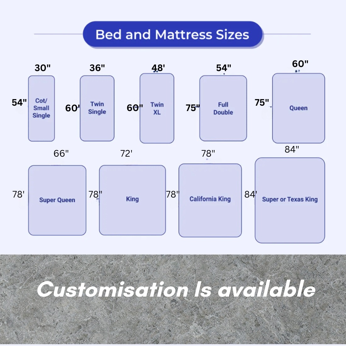 - SIZE OPTIONS: Available in various dimensions including Single (90×190 cm), Queen (150×190 cm), and King (180×200 cm) to suit different bed frames