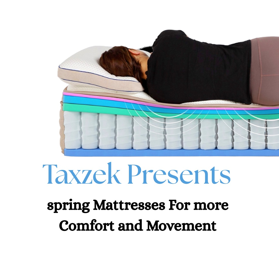 Taxzek Spring Movement Mattress| PU Foam Mattress | 8-Inch | White and Blue Colour | Multi Layer Support | High Movement with Comfort Sleep, Multiple, (Super or Texas King)