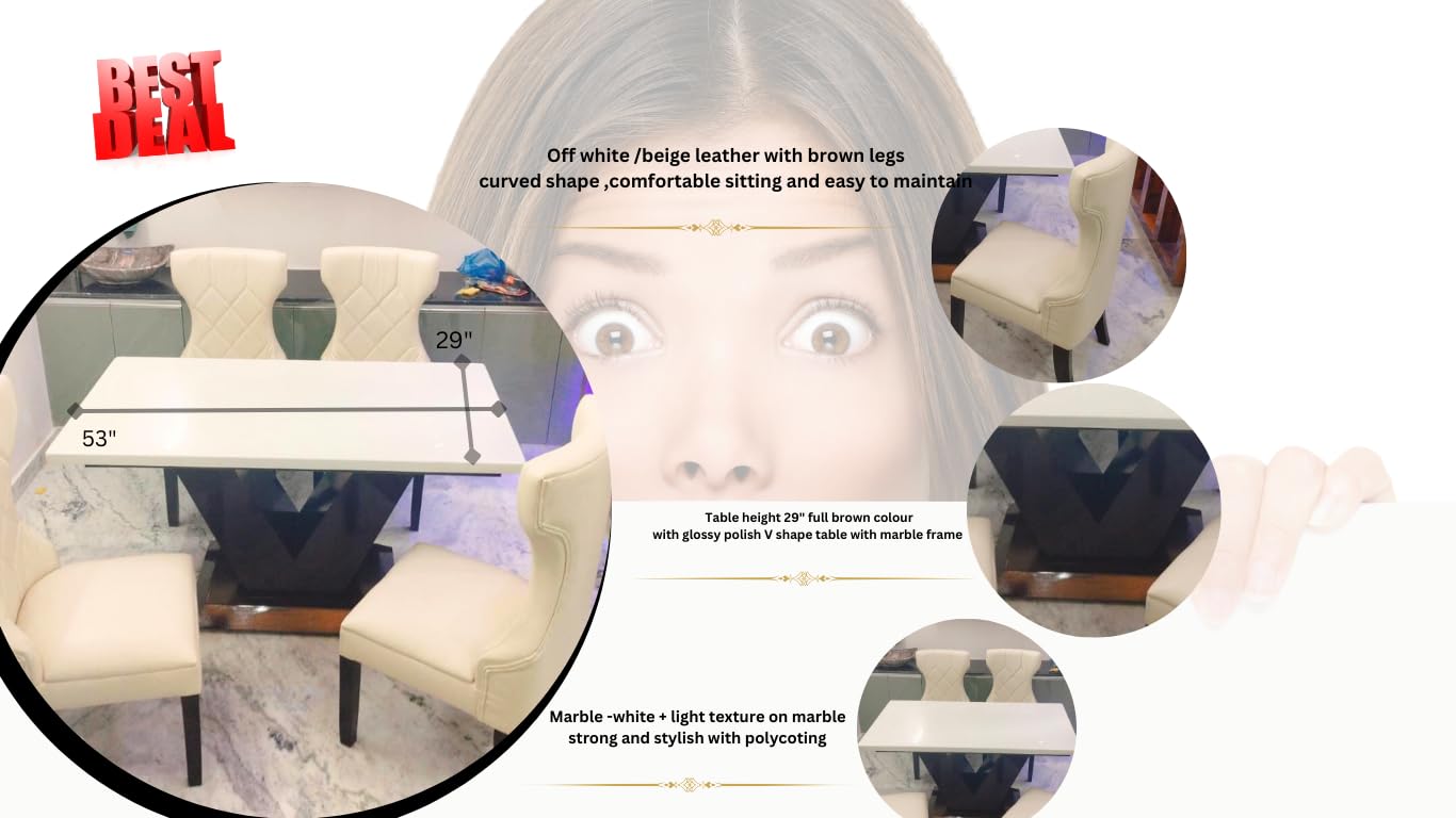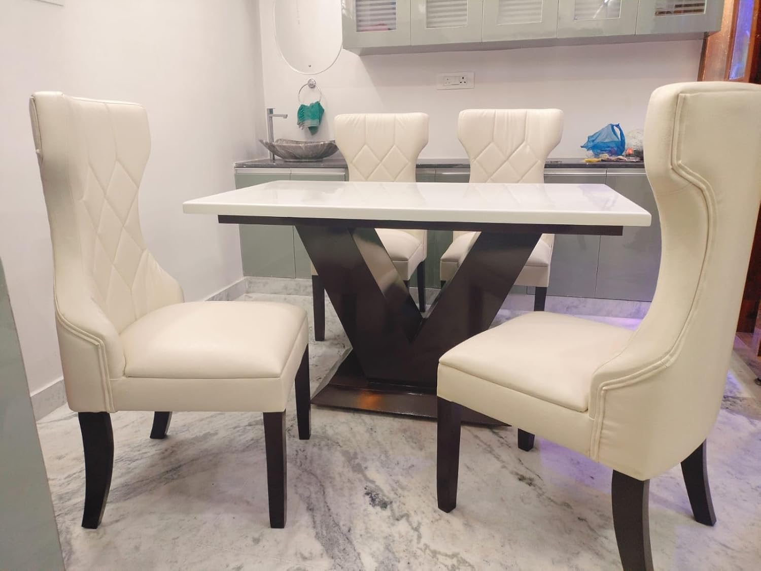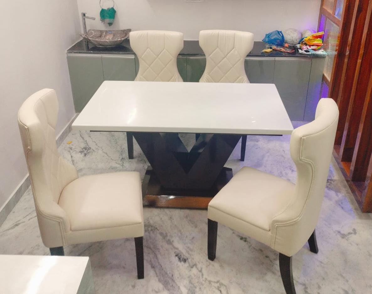 Taxzek Wood Four Seater V-Shape Base Marble Top Dinning Table, Kitchen Furniture, (American), Brown