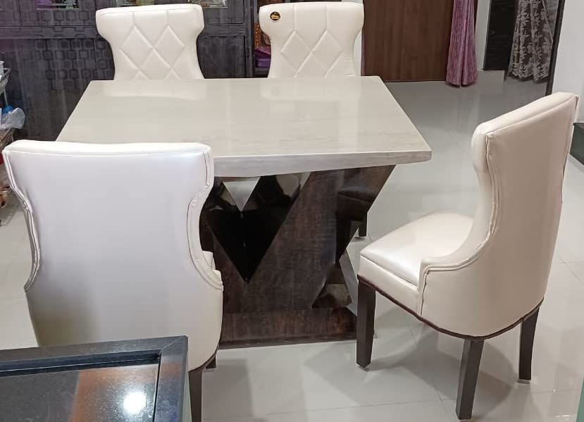 Taxzek Wood Modern V-Shaped Dining Table With Marble & Modern Curved Chairs (Beige), 17 Centimeters